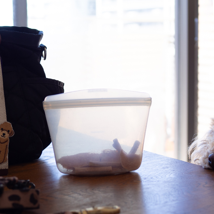愛犬家の皆様、お散歩の時のおやつ入れに何を使っていますか?我が家は色々なアイテムを試す「おやつ入れジプシー」を経験し、ようやくこのスタッシャーのボウルSSサイズに落ち着きました。この「ボウル型」とにかく優秀。口がガバッと大きく開くので散歩中でもサッと指を入れておやつをあげることができます。SSサイズはコンパクトで、散歩バッグにスッと収まるサイズ感です。もちろん密閉性も抜群で、バッグの中で開いて中身が散らばってしまう心配もありません。クリアタイプなら中身の確認も一目瞭然。もう2年以上使っていますが、全く劣化がなく耐久性も文句なし。もし壊れても、また迷わずこれに買い換えると思います。