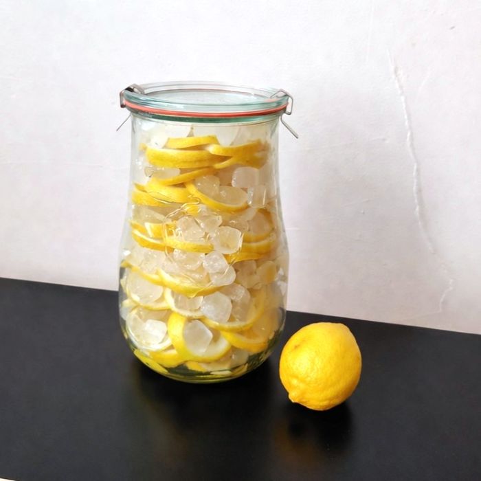 梅仕事の季節を前に、レモンシロップを仕込みました。使用したのは、ウェックのチューリップシェイプ1500ml。Lサイズの口径はレモンのスライスも出し入れしやすく、1kg分がすっぽり収まる大容量です。この丸みを帯びた愛らしいフォルムが、氷砂糖とレモンの美しい層を引き立ててくれて、キッチンに置くだけで気分が上がる!これから梅酒や自家製サワー作りにも大活躍してくれそうです。