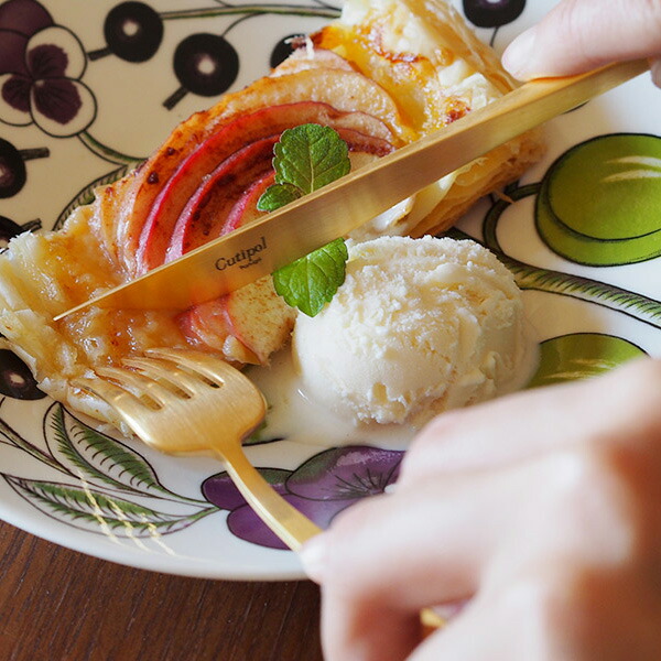 マットゴールドの輝きは、真鍮のような趣で落ち着きと気品を感じさせます。お気に入りの食器にケーキやタルトなどを載せて、紅茶をスタンバイしたら、とっておきの時間の始まり、始まり♪デザート用にもオススメですが、女性やお子様用の食事フォークとしてもどうぞ。