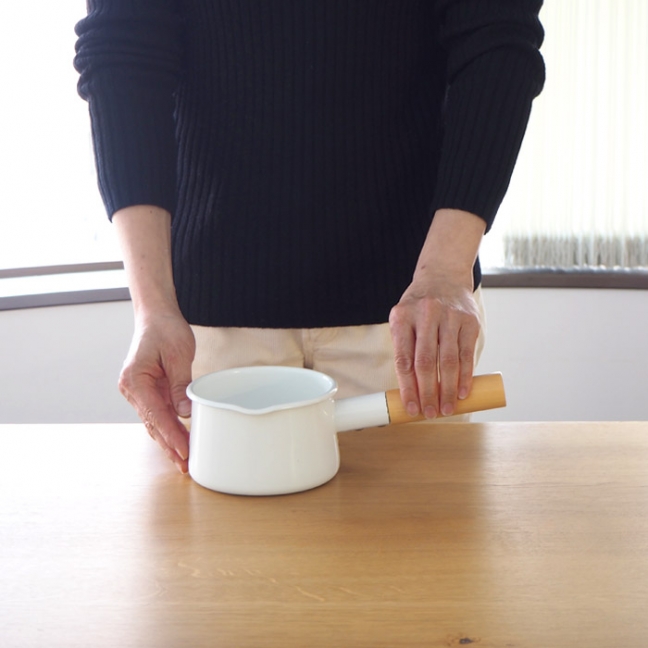 手で触れる部分のパーツは楓の木。優しい配慮がされているだけでなく、全体の雰囲気を温かなものにしてくれています。特にハンドルの絶妙な角度としっかり握れる太さは鍋の取り回しを楽々なものに。ステンレスや鋳物鍋とは違う使い心地のホーロー製品。シリーズで揃えると今以上に料理の時間を盛り立ててくれそうです。