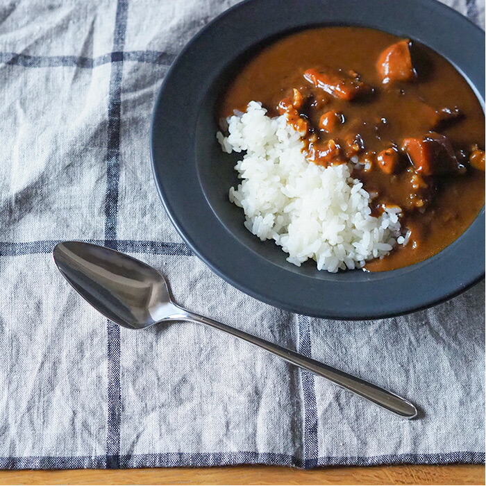 先に向かって細くなる三角形のようなカタチが特徴的なテーブルスプーン。スプーン全体としては大きめに感じるかもしれませんが、先端部分が細くなっていることから口に入れやすく、想像以上に食べやすいスプーンです。特にカタチの特徴からカレーやシチュー、リゾットなどと相性が良さそうです。レストラン気分を味わえるこのおしゃれなカトラリーがあるだけで「どんなお皿を合わせようか」、「どんなメニューを作ろうか」、「どんなテーブルコーディネートにしようか」と食事への期待が高まります。普段使いはもちろん、ゲストを招いた特別な日のテーブルも似合う大人のカトラリーです。