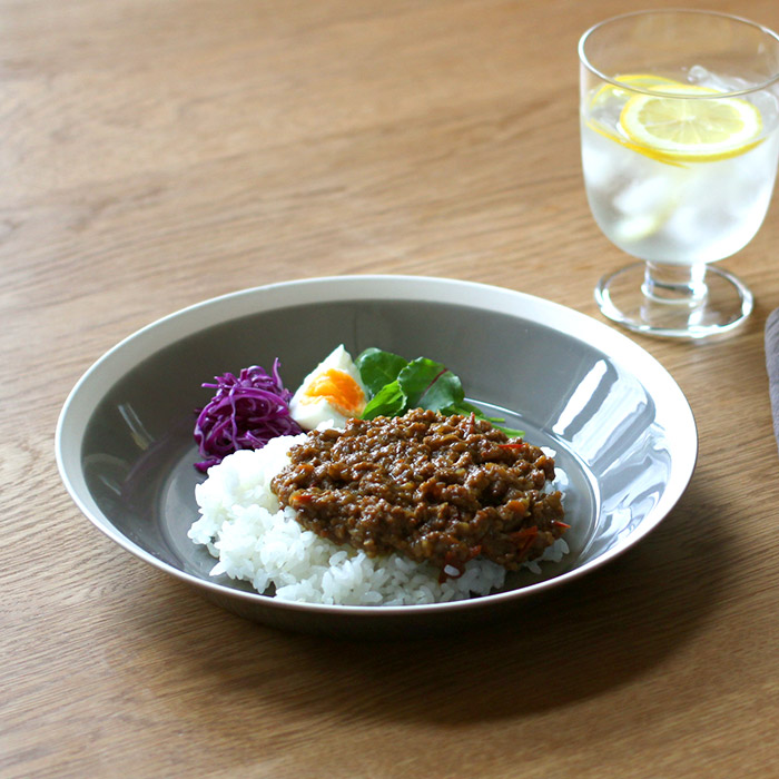 kokoのディーププレートは我が家で一番使われている器です。リムの広い余白が上品なデザインですが、そこが使いやすいポイント。欧風カレーにもスープカレーにもピッタリ。もちろん他のお料理にも。