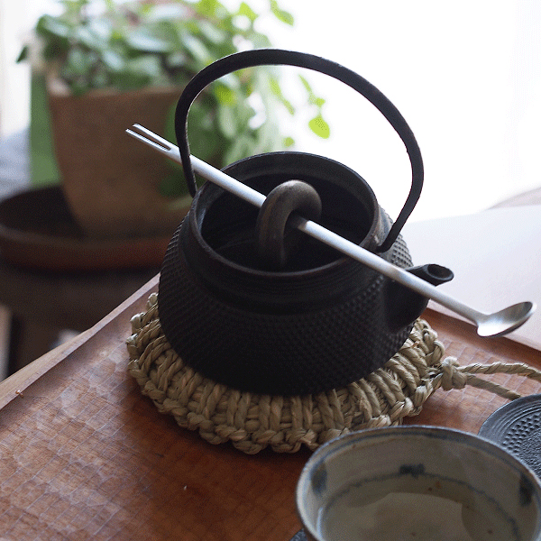 第一印象は「ん、箸置き?にしては存在感ありすぎ...」。家事問屋の担当者から「やかんの中から取り出しやすいように中心に穴をあけたことで表面積が増え、より鉄分が出やすくなったんですよ」と展示会でご説明頂き、このドーナツ型の形状に納得。鉄のみで作られているので衛生的とも仰っていました。義母から譲り受けた小さな鉄瓶にわが家のてつまろ君を入れてお湯を沸かし、湯呑に注いでから、鉄瓶よりてつまろ君を取り出して、物干し竿のように通して乾かす。わたしの毎朝の日課です。