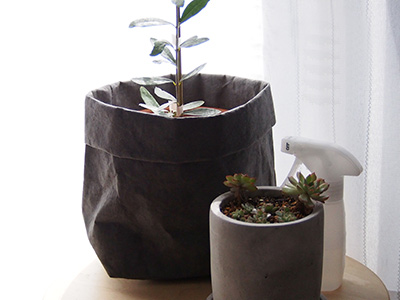春になったので新しい植物をお迎えしたいな~と思い、オリーブの苗木を購入しました。ウォッシュママのペーパーバッグを鉢カバーとして使っていますが、落ち着いた色味と軽さ、もし汚れても洗えば大丈夫!という安心感があるので晴れた日はこのままベランダに出しちゃってます。